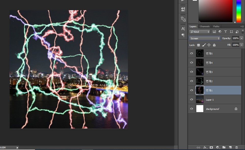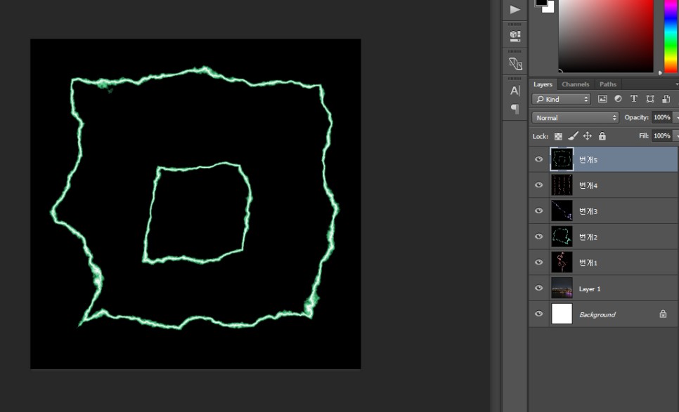 그 이후에는 반복입니다. 이때 번개를 만드실때 레이어를 하나씩 추가하시는 것을