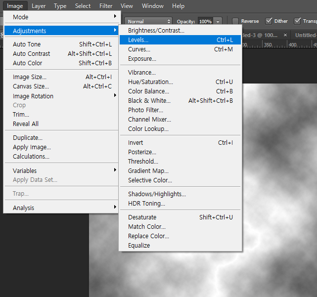 그리고 나서 Image -> Adjustments -> Level 적용합니다