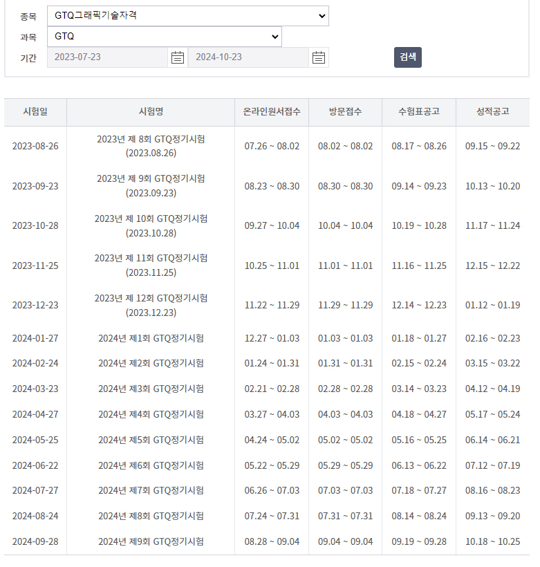 오늘은 GTQ(포토샵) 시험일정을 알려드리려고 합니다