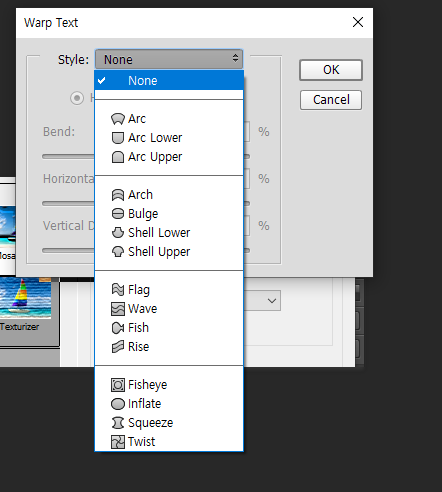Warp Text 옵션을 적용 하실 수 있습니다